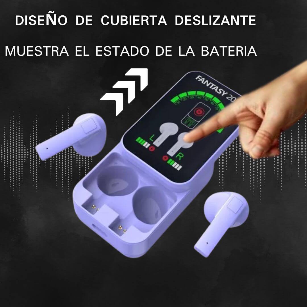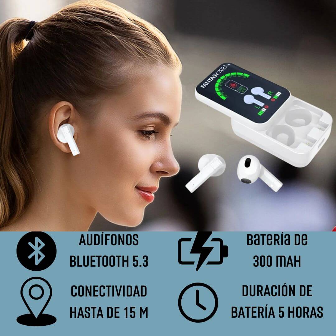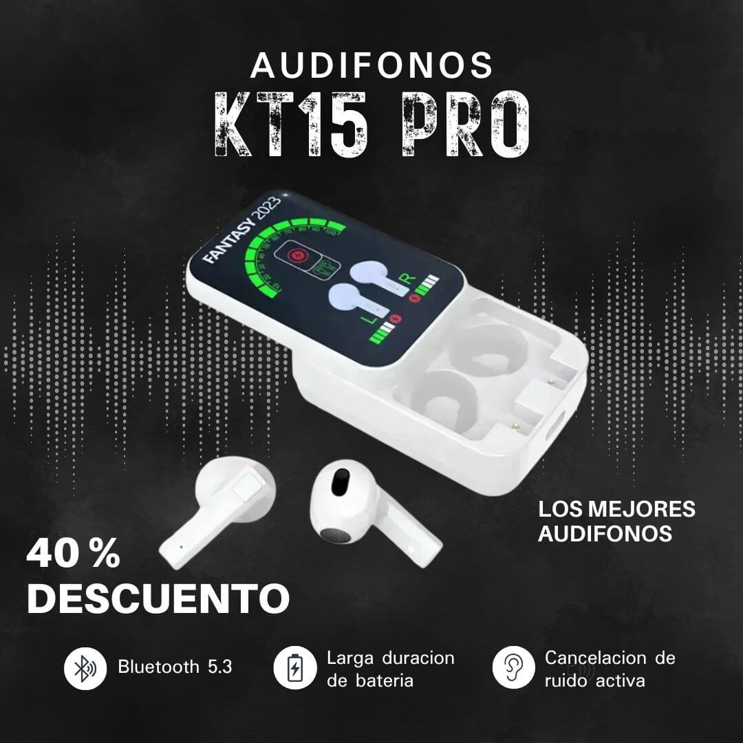 Los audífonos Kt15 Pro combinan estilo y versatilidad. Conéctalos fácilmente gracias a su Bluetooth 5.3, disfruta de la música con un simple toque. Además, la pantalla muestra los niveles de batería de los audífonos y del estuche.