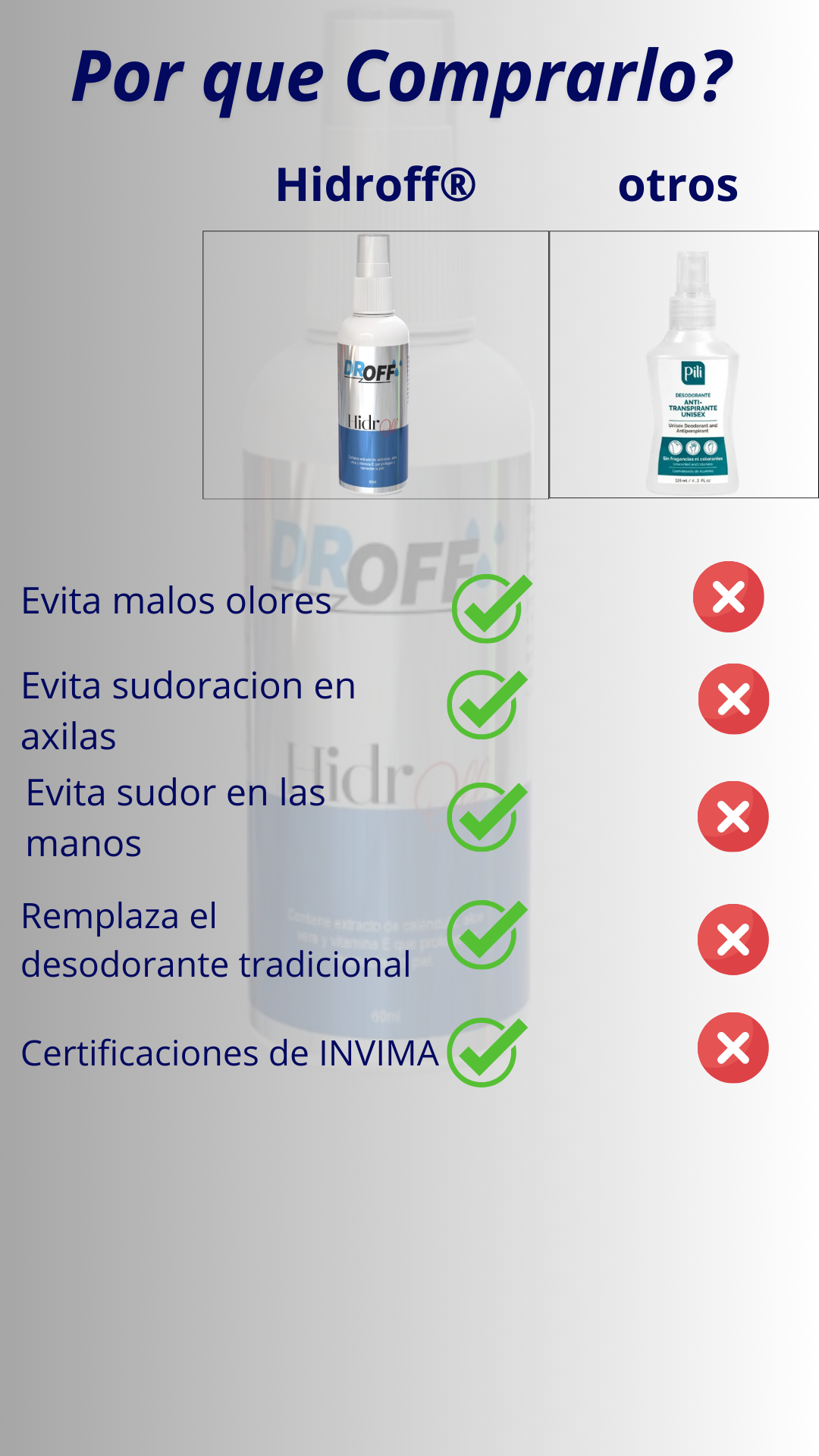 Hemos hecho el estudio de comparación con desodorantes de marcas reconocidas o productos para los pies, y funciona mucho mejor incluso después de muchas horas.