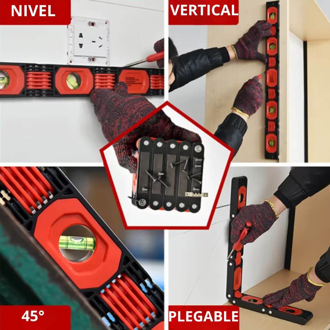 Nivela con precisión superficies verticales, horizontales y diagonales, al ser plegable te permite adaptarlo a cualquier superficie o ángulo. Es ideal para trabajos en casa, carpintería o construcción.