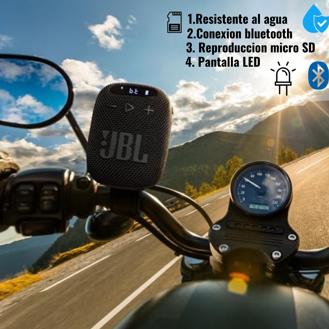 Con el parlante EcoWind 3, tus rodadas serán más chimbas, este será tu complemento perfecto, mientras acumulas más KM, Resistente al agua y seguirá sonando con fuerza.