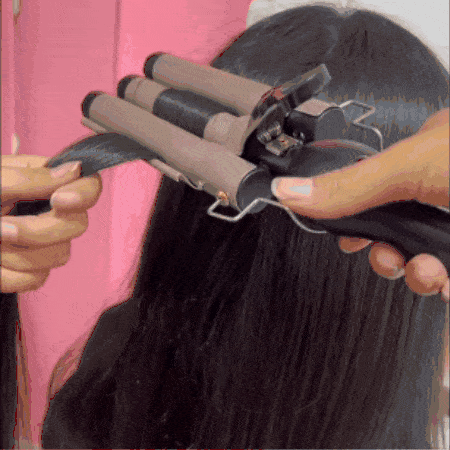 Solo tienes que dividir tu cabello en secciones y colocar cada sección entre los barriles. Aprieta y suelta suavemente después de unos segundos. Repite hasta cubrir todo el cabello y disfruta de unas ondas increíbles en minutos. ¡Es fácil, incluso para principiantes!
