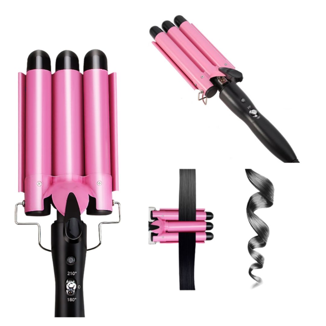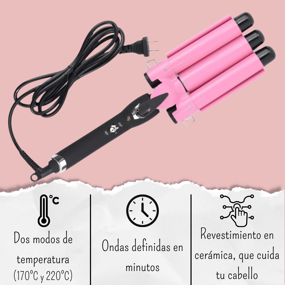 Consigue ondas de impacto con la plancha de 3 tubos, la herramienta favorita de los estilistas en Colombia para crear peinados duraderos y sin esfuerzo. Si eres fan de las ondas en casa o quieres agregar calidad profesional a tu salón, esta plancha es para ti. ¡Suma un toque de estilo a cada look!