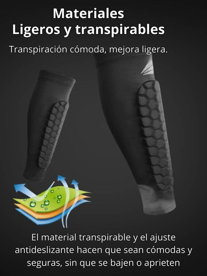 Nuestras canilleras tienen un diseño ajustable y elástico , lo que permite que se adapten perfectamente a cualquier tipo de pierna sin incomodar.